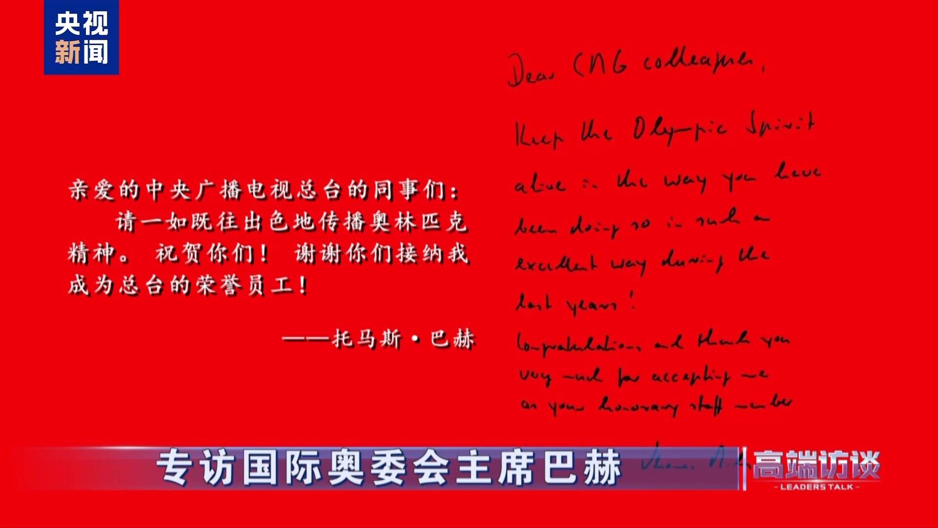 巴赫表示,自己的主席任期即将结束,借此机会向总台台长以及总台的全体员工十年来的合作和友谊表达诚挚的感谢,他说:“我很荣幸能与你们一起走过这段旅程,我们坚信体育的力量可以让世界变得更美好,我恳求大家以同样的合作精神继续支持我的继任者,通过体育让世界变得更美好。”